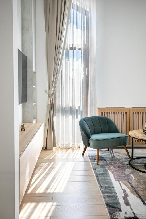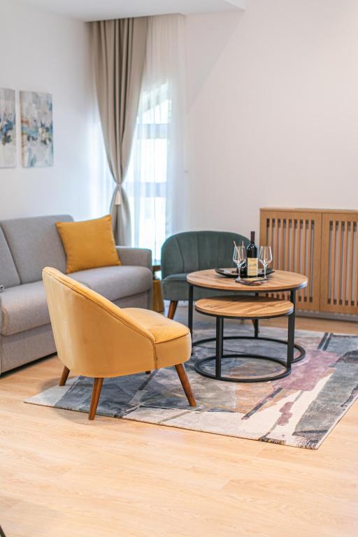 "The building is new and modern. The staff is very friendly. The apartment is very clean and very well designed. The furniture is comfortable. Thank you for the bottle of wine! 5 minutes drive from the center of the town. Free parking. The breakfast was tasty in a beautiful restaurant close to the property."