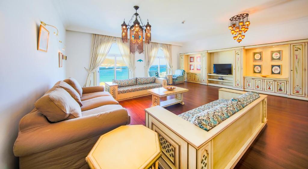 해변 바로 옆에 놓인 지중해 스타일의 이 리조트는 보드룸 만(Bodrum Bay)의 탁 트인 전경을 조망할 수 있는 대형 인피니티 풀 복합 단지를 보유하고 있습니다. Salmakis에는 온수 욕조, 터키식 목욕탕, 마사지 시설을 갖춘 넓은 트리트먼트 센터도 있습니다. Salmakis Resort & Spa의 에어컨이 완비된 넓은 룸은 무료 Wi-Fi 인터넷과 위성 TV를 갖추고 있습니다. 욕조가 설치된 욕실, 발코니, 휴식 공간도 마련되어 있습니다. Salmakis Resort의 오스만식 뷔페은 애피타이저와 정통 케밥을 선보입니다. 지중해식 식사 지점은 해고산물 요리를 전문으로 합니다. 비치 바, 비타민 바를 포함한 5곳의 바 중 한 곳에서 음료를 즐겨 보십시오. Salmakis Resort & Spa의 심폐 강화 운동 기구가 구비된 피트니스 짐, 다이빙 시설, 테니스 코트를 이용해 보시는 것도 좋습니다. 리조트에서 마리나와 성이 자리한 보드룸(Bodrum) 도심까지는 도보로 15분이 걸립니다. 밀라스-보드룸 국제공항(Milas-Bodrum International Airport)까지는 차로 30분이 채 걸리지 않습니다. 전용 안전한 차고도 무료로 이용하실 수 있습니다.
